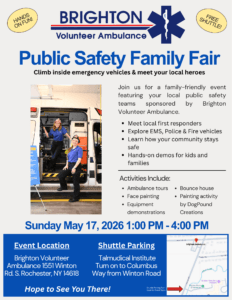 Event Location: Brighton Volunteer Ambulance, 1551 Winton Rd. S., Rochester, NY 14618